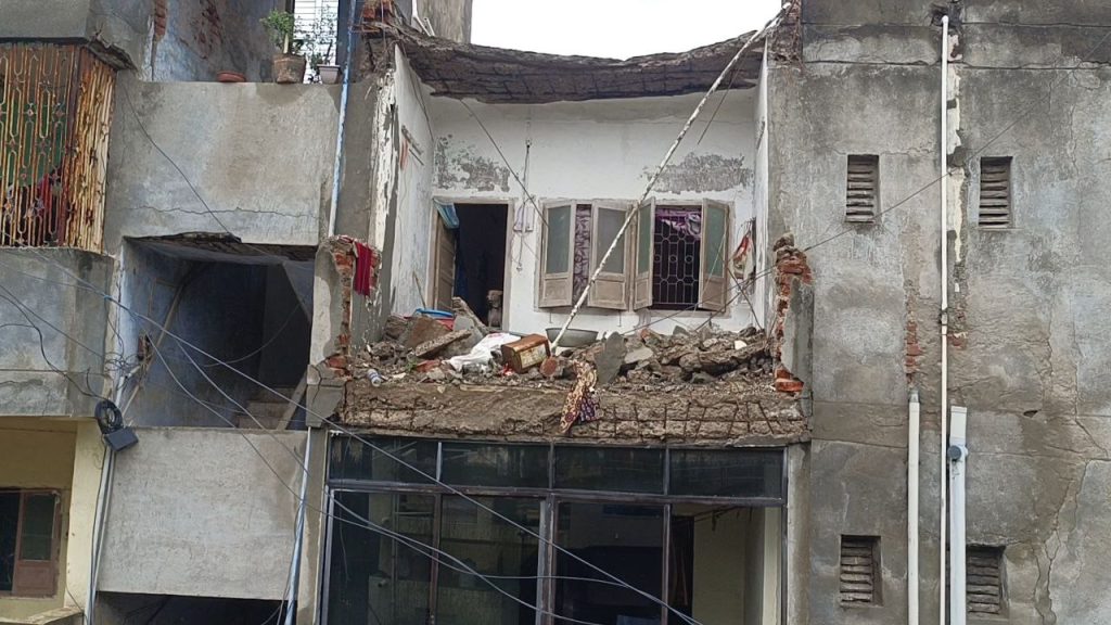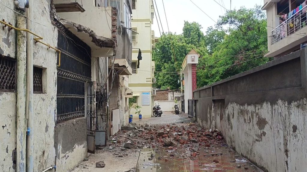 BHARUCH : ભરૂચ જીલ્લામાં સંખ્યાબંધ જર્જરિત ઈમારતો આવેલી છે.તેને ઉતારવામાં મિલ્કત ધારક ઉણા ઉતર્યા છે અને મિલ્કત ધારકોને નોટિસ આપી સંતોષ માનતા હોય છે આવી જ એક મક્તમપુર નજીકની ગાયત્રી ફ્લેટના મકાનમાં રહેતા રહીશ ની ધાબા સાથે ગેલેરીની મોટી દીવાલ ધસી પડતા વરસાદના કારણે બાળકો રમતા ન હોવાના કારણે મોટી હોનારત ટળી હતી જેથી તંત્રએ હવે નક્કર કાર્યવાહી કરવી જરૂરી છે.