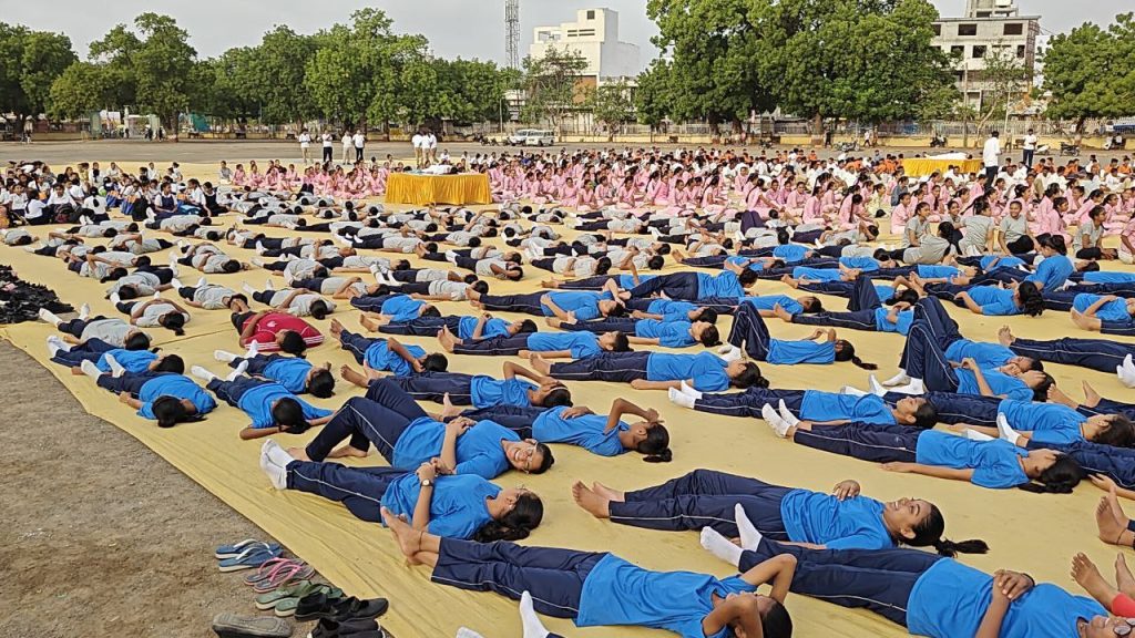 GONDAL : સંગ્રામજી હાઈસ્કૂલ ખાતે તાલુકા કક્ષાએ યોગ દિવસની ઉજવણી કરાઈ