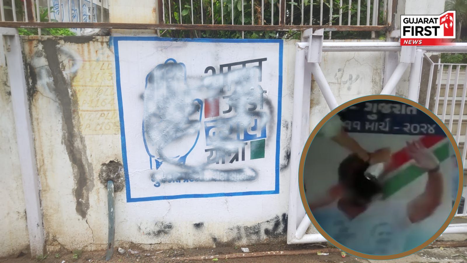 કેટલાક લોકોએ રાહુલ ગાંધીના પોસ્ટર પર લગાવી કાળી શાહી