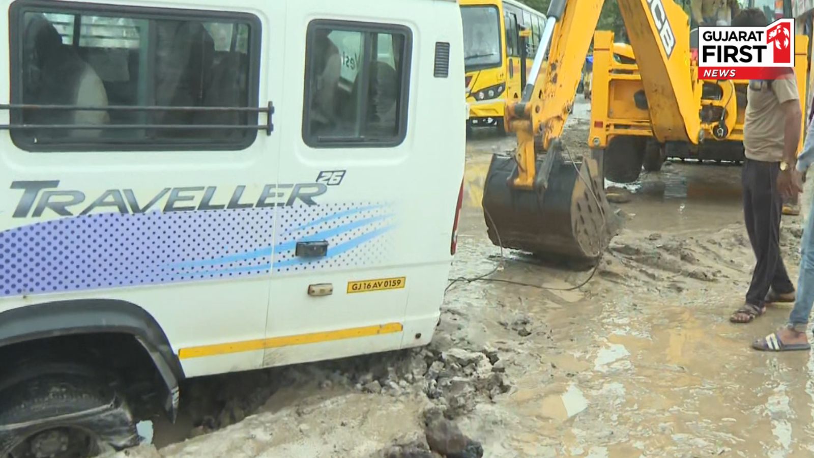 JCB બોલાવી સ્કૂલ બસ બહાર કાઢી