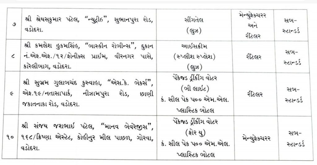 VADODARA : વડોદરા મહાનગર પાલિકા (VMC - VADODARA) દ્વારા શહેરના જુદા જુદા વિસ્તારોમાં પનીર, ખાદ્યતેલ, આઇસક્રીમ, પેકેજ્ડ ડ્રીંકીંગ વોટર, કુલ્ફી, ચીલી પાવડરનું વેચાણ કરતા ઉપ્તાદકો, ડિસ્ટ્રીબ્યુટર, તથા રીટેઇલ દુકાનો સહિતની જગ્યાઓ પર ચેકીંગ હાથ ધરી ત્યાંથી નમુના એકત્ર કરવામાં આવ્યા હતા. જેના પરિણામો આજે સામે આવ્યા છે. જેમાં પેકેજ્ડ ડ્રીકીંગ વોટરથી લઇને પનીર સુધીના 10 અલગ અલગ નમુનાઓ સબ સ્ટાન્ડર્ડ મળી આવ્યા છે.