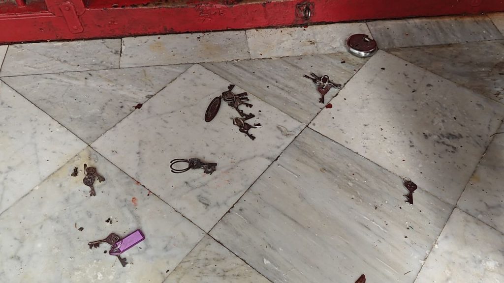 મંદિર નાં ચોકીદાર યોગેન્દ્રસિહ થાપા છેલ્લા ઘણા વરસો થી અહી ચોકીદાર તરીકે ફરજ બજાવે છે.તેમનાં જણાવ્યાં મુજબ રાત્રે ત્રણ શખ્સોએ મંદિર પરીશર માં પ્રવેશ કર્યો હતો.જે પૈકી એક શખ્સે મને ઓરડીમાં બાંધી દઇ પુરી દીધો હતો.બાદ માં ચોરીને અંજામ આપ્યો હતો.તસ્કરો એ ચોરી કરતા પહેલા મંદિર પરીશર માં લગાવાયેલા સીસી કેમેરા માં તોડફોડ કરી હતી.