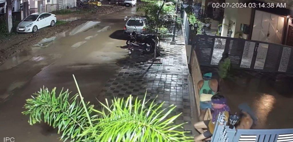 વડોદરામાં પોલીસના નાઇટ પેટ્રોલીંગના ધજાગરા ઉડાડતી ઘટનાઓ અવાર-નવાર સામે આવતી રહે છે. જે પોલીસના દાવાઓથી વિપરીત પરિસ્થીતી તરફ સંકેત કરે છે. આવી જ એક ઘટના મકરપુરા વિસ્તારમાં છેવાડે આવેલી આત્મીય કાઉન્ટી સોસાયટીમાં સામે આવી છે. આ ઘટનાના સીસીટીવી હાલ સોશિયલ મીડિયા પર સામે આવ્યા છે. જેમાં રાત્રે ત્રણ વાગ્યાના આરસામાં ચડ્ડી-બનિયાનધારી ગેંગનીના ત્રણ તસ્કરો મકાનમાં ચોરી કરવા માટે ત્રાટકતા હોવાનુો જોવા મળી રહ્યું છે. ઘરના દિવાલની ઓથે તેઓ દરવાજા સુધી આવી પહોંચે છે. ત્યાર બાદ બે તસ્કરો મકાનનું તાળુ તોડવામાં જોતરાય છે. જ્યારે અન્ય એક તસ્કર પહેરો ભરી રહ્યો હોય તેવું જોવા મલી રહ્યું છે.