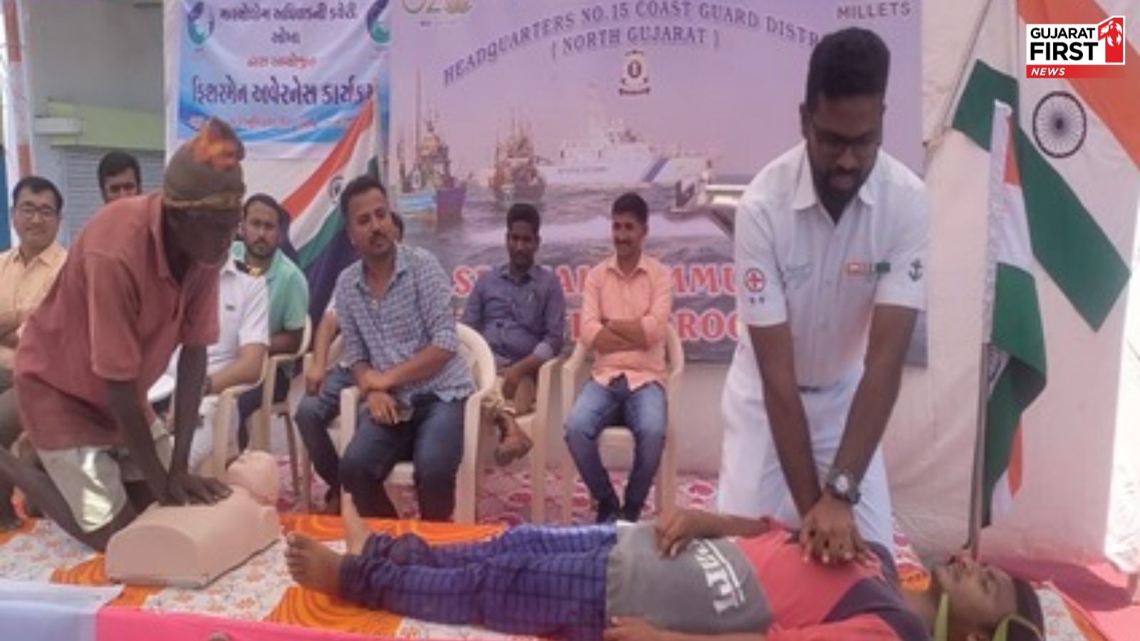 કોસ્ટ ગાર્ડ ડિસ્ટ્રિક્ટ હેડક્વાર્ટર નંબર 15 (ઉત્તર ગુજરાત) દ્વારા 08 મે 2023ના રોજ આર.કે. બંદર, ઓખા ખાતે ફિશરીઝ વિભાગ, વન વિભાગ, ભારતીય હવામાન વિભાગ, મરીન પોલીસ ઓખા અને ફિશરીઝ એસોસિએશનના પ્રતિનિધિઓની હાજરીમાં સ્પેશિયલ કોમ્યુનિટી ઇન્ટરેક્શન પ્રોગ્રામ (CIP) હાથ ધરવામાં આવ્યો હતો. સભ્યો CIPનો ઉદ્દેશ્ય માછીમાર સમુદાયમાં ચોમાસા દરમિયાન દરિયામાં જાન-માલની સલામતી અંગે જાગૃતિ લાવવાનો હતો.