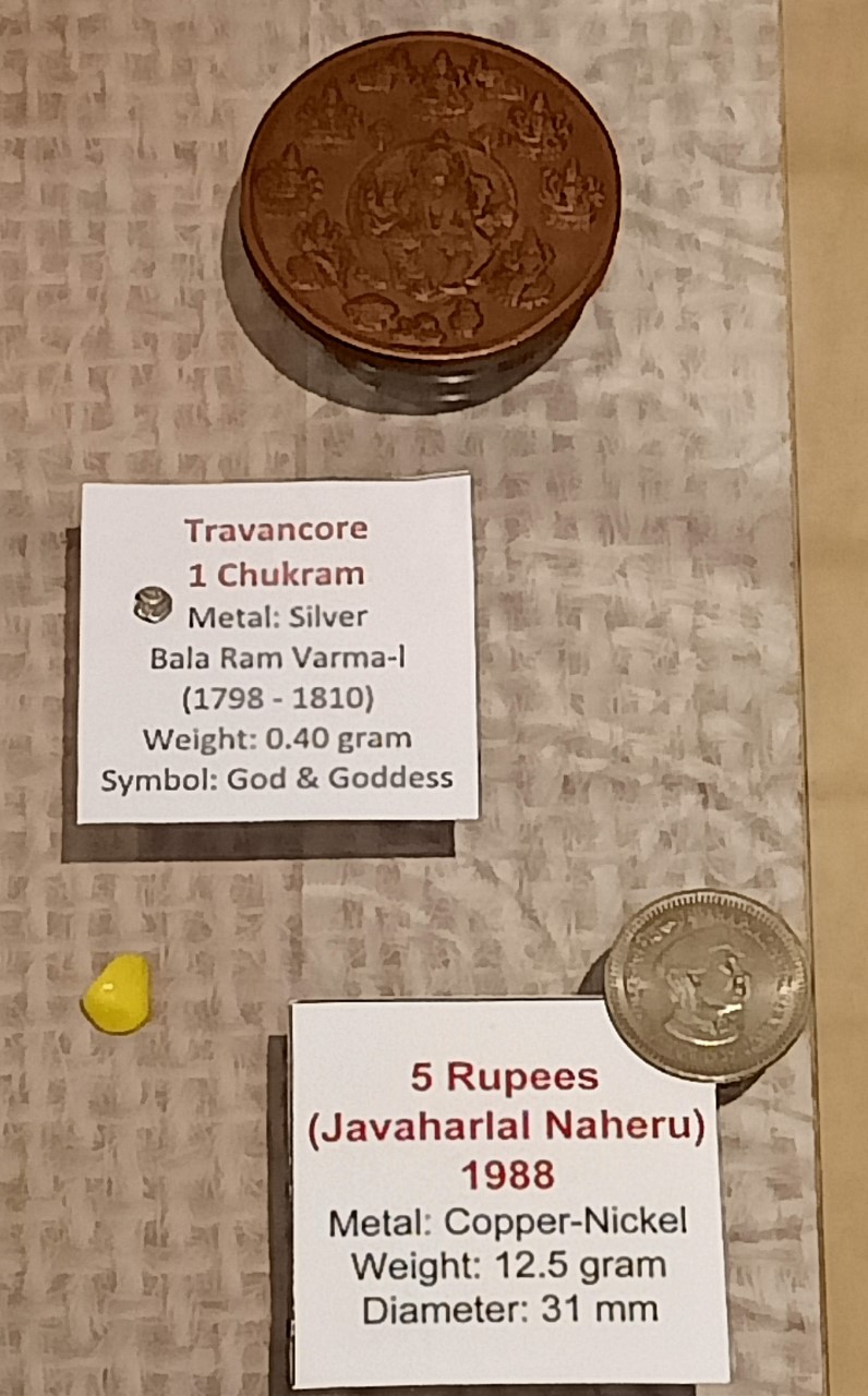 આ મ્યુઝિયમમાં સૌથી નાનો સિક્કો ત્રાવણકોરનો છે જે 1798 થી 1810 ની સાલનો છે