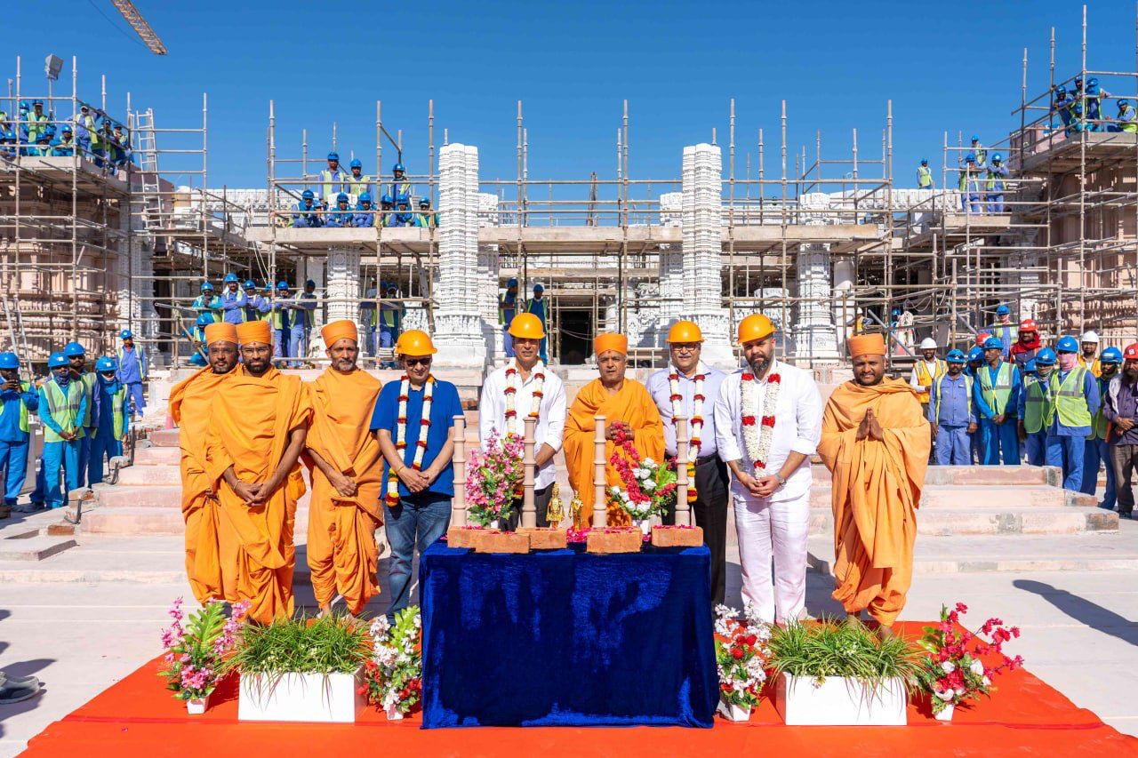 બાદમાં, અક્ષય કુમાર અને પ્રતિનિધિ મંડળે મંદિરના કન્સ્ટ્રકશનમાં ભાગ લેવાનો લ્હાવો લઇ ભૂમિપૂજનની ઇંટ મુકવા માટે પૂજામાં ભાગ લીધો હતો અને . આ સમયે 40,000 થી વધુ લોકો અહીં ઉપસ્થિત રહ્યા હતા, જેમણે "સંવાદિતાને હાથ આપીને" મંદિર બનાવવામાં મદદ કરવા માટે પોતાની ઇંટો મૂકી.