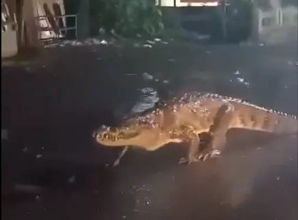 A crocodile out on a stroll in Maharashtra's Ratnagiri. pic.twitter.com/5VrDeo15Oo— Aishwarya Paliwal (@AishPaliwal) July 1, 2024