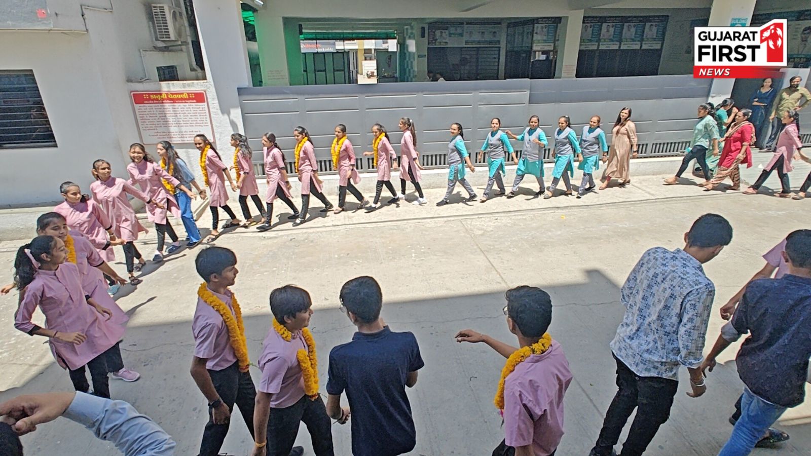 શાળા ખાતે ડી.જે ના તાલે વિદ્યાર્થીઓ રાસ ગરબે રમ્યા