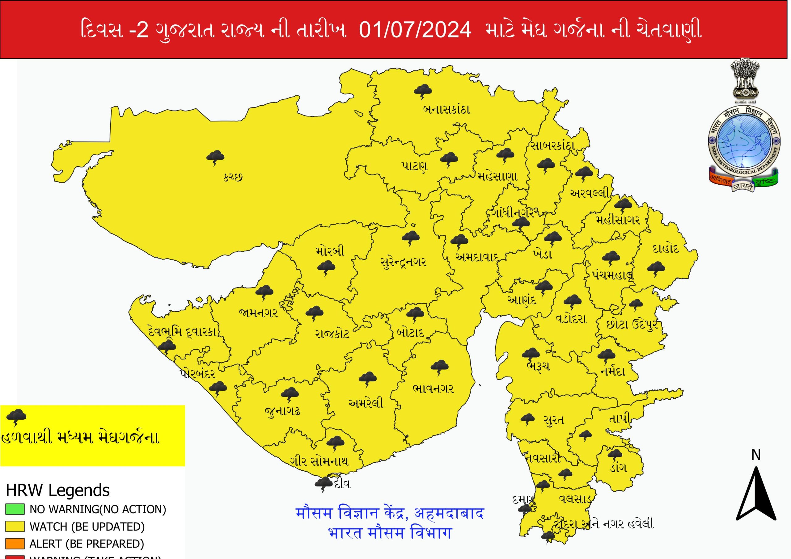 દક્ષિણ-પશ્ચિમ ચોમાસું દેશના ઉત્તરીય રાજ્યો તરફ આગળ વધી રહ્યું છે. વીજળી પડવા અને ડૂબી જવા જેવી વરસાદ સંબંધિત ઘટનાઓને કારણે દેશભરમાં અનેક મૃત્યુ નોંધાયા છે. ભારતીય હવામાન વિભાગ (IMD) અનુસાર મહારાષ્ટ્ર, બિહાર, રાજસ્થાન, ગુજરાત, હરિયાણા, ઉત્તર પ્રદેશ, ઉત્તરાખંડ, મધ્ય પ્રદેશ, નાગાલેન્ડ, મણિપુર, મિઝોરમ અને અરુણાચલ પ્રદેશના રાજ્યોમાં રવિવારે ભારે વરસાદ પડ્યો હતો. હવામાન વિભાગના જણાવ્યા અનુસાર ગુજરાતમાં આગામી ચાર દિવસ સુધી વરસાદી માહોલ જારી રહેશે. IMDએ એક રિલીઝમાં જણાવ્યું છે કે આગામી બે દિવસમાં દક્ષિણ અને મધ્ય ગુજરાત અને સૌરાષ્ટ્ર વિસ્તારમાં છૂટાછવાયા સ્થળોએ ભારે વરસાદની અપેક્ષા છે. મંગળવાર સુધી દિલ્હીમાં ભારે વરસાદની આગાહી સાથે, મ્યુનિસિપલ સંસ્થાઓએ પાણી ભરાઈ જવાની સમસ્યાને પહોંચી વળવા તૈયારીઓ વધારી દીધી છે, જે અંતર્ગત સ્ટાફ અને સાધનોની જમાવટ વધારવા સહિત પ્રાદેશિક એકમોને એલર્ટ રાખવા માટે પગલાં લેવામાં આવ્યા છે.