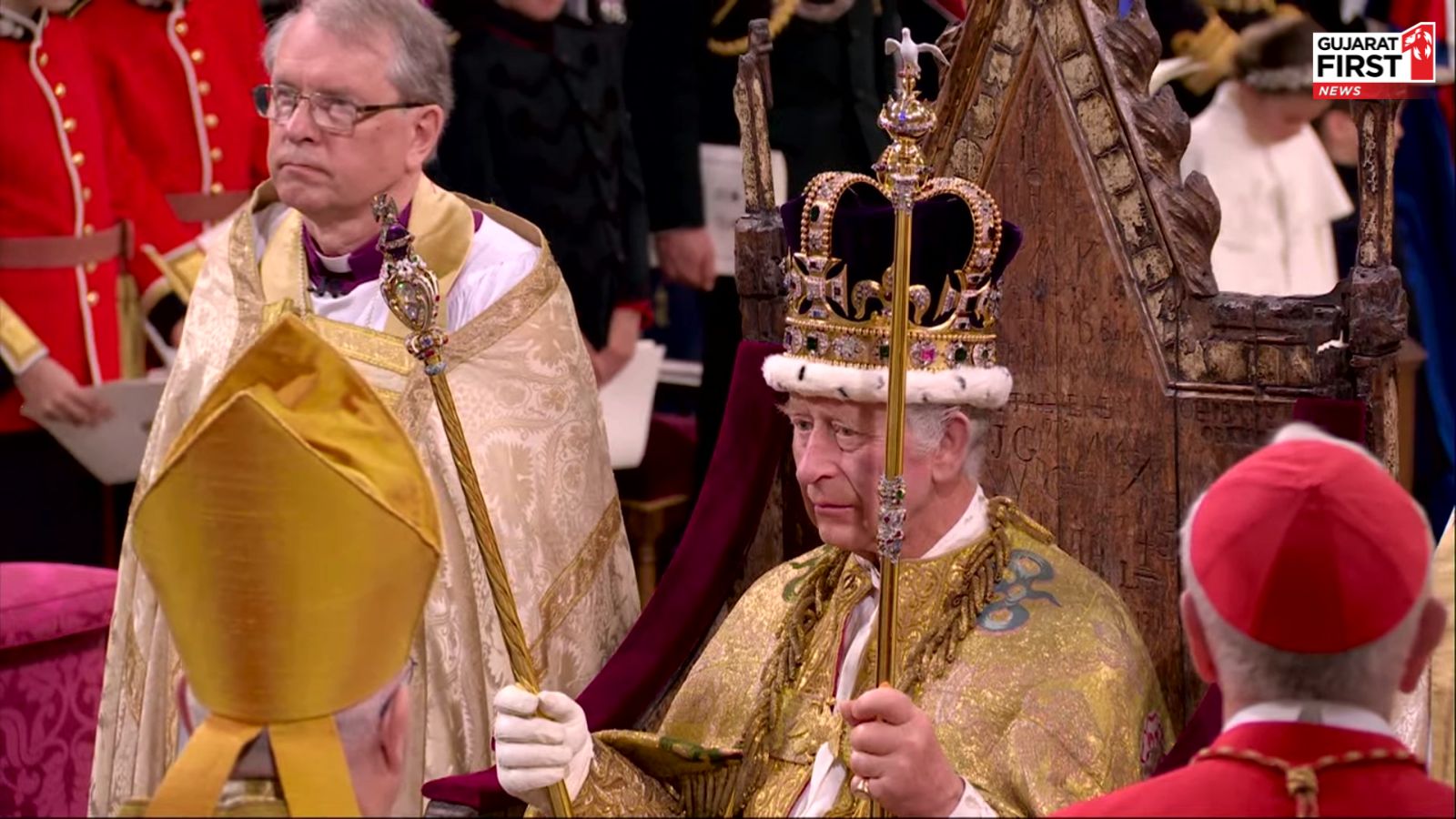 બ્રિટનના રાજા ચાર્લ્સ ત્રીજાએ શનિવારે લંડનમાં વેસ્ટમિંસ્ટર એબી ખાતે શાહી તાજ પહેર્યો. રાજા ચાર્લ્સ સાથે, ક્વીન કોન્સોર્ટ કેમિલાને પણ તાજ પહેરાવવામાં આવ્યો હતો. શાહી તાજ પહેરતા પહેલા, તેમણે શપથ લીધા. આ શપથમાં તેમણે કહ્યું હતું કે તેઓ બ્રિટનના તમામ લોકો પર ન્યાય અને દયાથી શાસન કરશે.