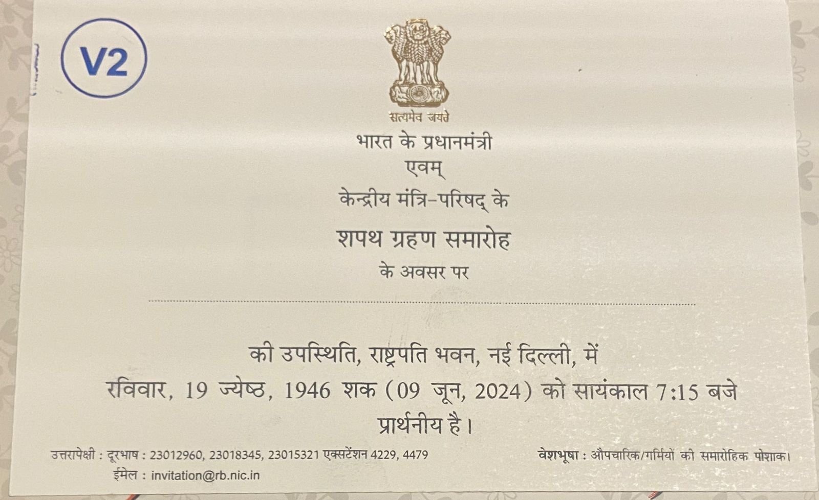 Prime Minister : સામાન્ય ચૂંટણી 2024 પછી વડાપ્રધાન ( Prime Minister ) નરેન્દ્ર મોદી અને તેમના પ્રધાનમંડળનો શપથ ગ્રહણ સમારોહ 9 જૂન 2024 ના રોજ સાંજે રાષ્ટ્રપતિ ભવન ખાતે યોજાનાર છે. આ પ્રસંગે ભારતના પાડોશી અને હિંદ મહાસાગર ક્ષેત્રના દેશોના નેતાઓને વિશેષ અતિથિ તરીકે આમંત્રિત કરવામાં આવ્યા છે. શ્રીલંકાના પ્રમુખ રાનિલ વિક્રમસિંઘે; માલદીવના પ્રમુખ મોહમ્મદ મુઇઝુ; અહેમદ અફીફ, સેશેલ્સના વાઇસ પ્રેસિડેન્ટ; બાંગ્લાદેશના વડાપ્રધાન શેખ હસીનાને શપથ ગ્રહણ સમારોહમાં હાજરી આપવા માટે આમંત્રણ આપવામાં આવ્યું છે. આ શપથગ્રહણ સમારોહની આમંત્રણ પત્રિકાની તસવીર પણ બહાર આવી છે.
