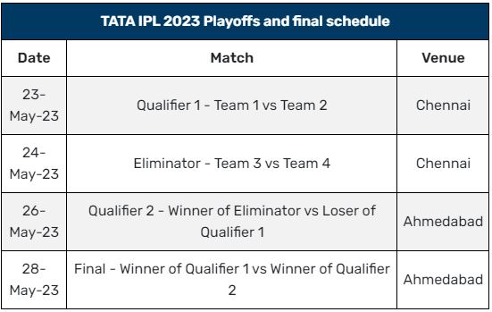 IPL 2023 પ્લેઓફ મેચોની તારીખ જાહેર, આ શહેરમાં રમાશે ફાઈનલ મેચ