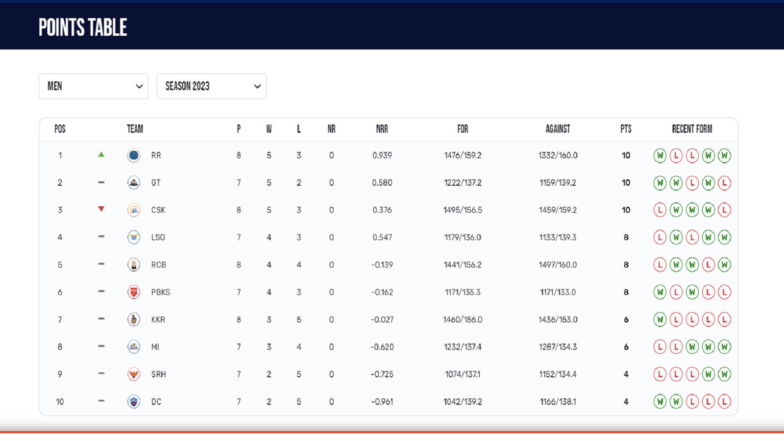 IPL 2023માં ગુરુવારે રાજસ્થાનની ટીમે ફરી એકવાર એમએસ ધોનીની કપ્તાનીમાં ચાર વખતની IPL ચેમ્પિયન ચેન્નાઈ સુપર કિંગ્સને હરાવ્યું છે. જોકે ટીમ આ પહેલા સતત બે મેચ હારી ગઈ હતી અને તેની અસર પોઈન્ટ ટેબલ પર પણ પડી હતી. ટીમ એક નંબરથી બીજા નંબર પર સરકી ગઈ હતી. પરંતુ હવે બીજી મેચ જીતીને ટીમે ફરી નંબર વનની ખુરશી પર કબજો જમાવ્યો છે. વળી, CSK એક હાર બાદ જ ત્રીજા નંબર પર પહોંચી ગઈ છે. દરમિયાન, એમએસ ધોનીને ભલે વિશ્વ અને IPL નો સૌથી મોટો કેપ્ટન માનવામાં આવે છે, પરંતુ તેમની ટીમનો સંજુ સેમસનની ટીમ સામે પરાજય થાય છે. અમે એમ નથી કહી રહ્યા, પરંતુ આંકડા તેની સાક્ષી આપે છે. અને આંકડા એક-બે વર્ષના નથી, પરંતુ ત્રણ વર્ષના છે. રાજસ્થાન સામેની મેચ પહેલા ચેન્નઈની ટીમ 7 માંથી 5 મેચ જીતીને 10 પોઈન્ટ સાથે પ્રથમ સ્થાને હતી, પરંતુ હવે રાજસ્થાનની ટીમે આ મેચ જીતીને પ્રથમ સ્થાન મેળવી લીધું છે. સંજુ સેમસનની આગેવાની હેઠળની રાજસ્થાનની ટીમ હવે 8 માંથી 5 મેચ જીતીને 10 પોઈન્ટ અને +0.939 નેટ રનરેટ સાથે નંબર વન પર પહોંચી ગઈ છે. બીજી તરફ, ગુજરાત ટાઇટન્સ 7 મેચમાંથી 5 જીત નોંધાવીને બીજા નંબર પર છે. ટીમના 10 પોઈન્ટ અને +0.580નો નેટ રનરેટ છે. આ સિવાય ચેન્નઈ સુપર કિંગ્સ 8 માંથી 5 જીત, 10 પોઈન્ટ અને +0.376 નેટ રનરેટ સાથે ત્રીજા નંબરે છે.