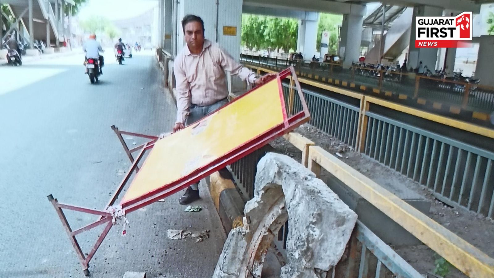 નોંધનીય છે કે, જે હાલતમાં મૂકીને ગયા ત્યાં કોઈ રાત્રિ દરમિયાન અહીથી પસાર થાય તો ચોક્કસ અકસ્માત થઈ શકે અને ગંભીર રીતે ઘાયલ થાય તેવું પણ જોખણ રહેલું છે. આવી સ્થિતિમાં તંત્રના માણસો મૂકીને જતા રહ્યા છે. ત્યારે આ જાગૃત નાગરિકની ફરજ ગુજરાત ફર્સ્ટ (Gujarat First) દ્વારા નિભાવવામાં આવી અને સાઈન બોર્ડને ખસેડવામાં આવ્યું પરંતુ એ ગટરનો મલબો અતિશય ભારે હોય 4 કે 5 વ્યક્તિથી ખશે એમ છે જે અહી તંત્રના કામ કરનાર બેજવાબદાર વ્યક્તિઓ રોડ પર જ મૂકીને જતા રહ્યા છે.