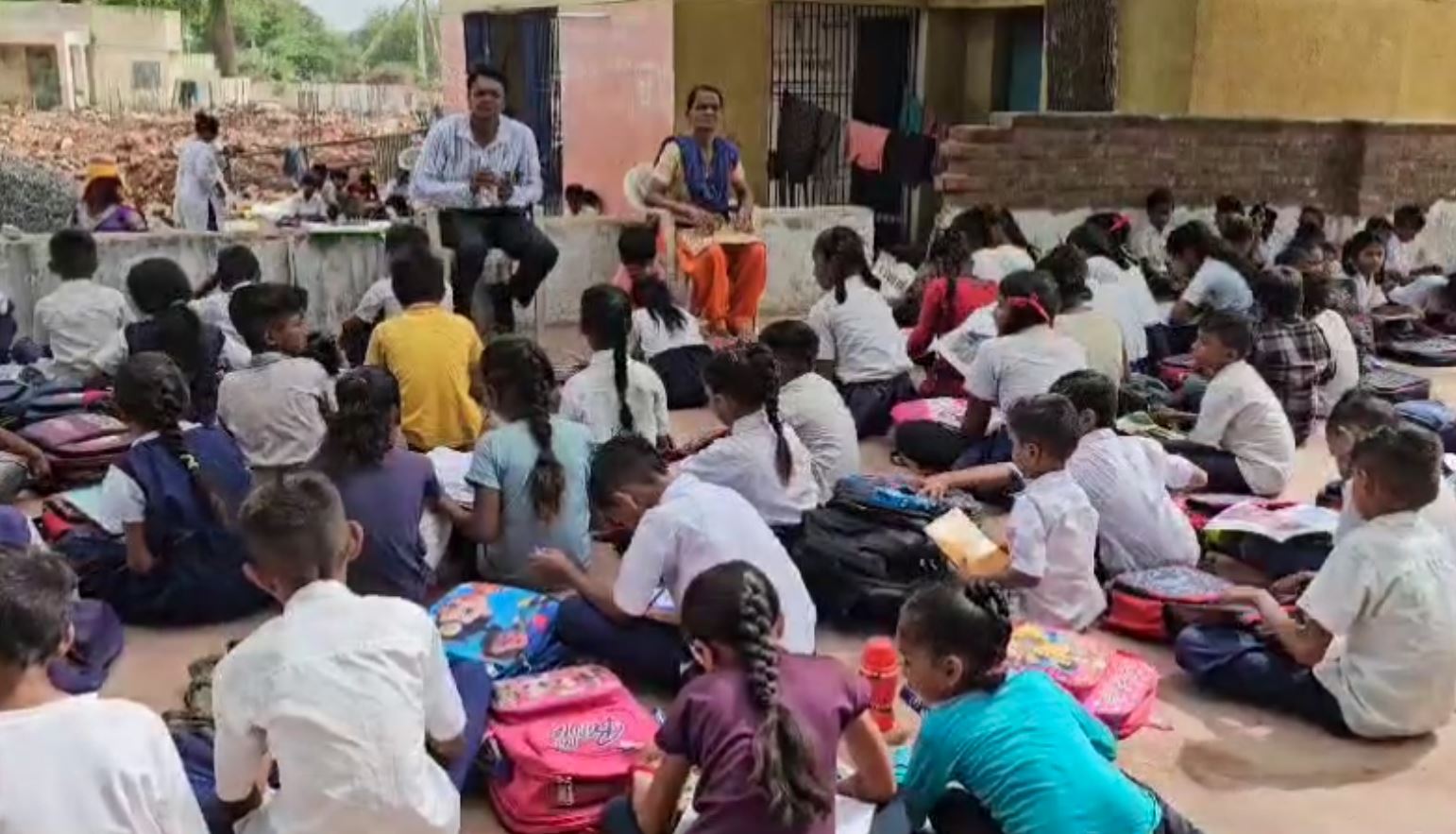 હવે શાળામાં નવા સત્રની શરુઆત થઇ ગઇ છે અને બાળકો સ્કૂલમાં આવવા માડ્યા છે ત્યારે કાળઝાળ ગરમી વચ્ચે નાના ભૂલકાં શાળાની બહાર બેસીને અભ્યાસ કરી રહ્યા છે. બાળકો માટે કમસેકમ વૈકલ્પિક વ્યવસ્થા કરવામાં આવી હોત તો સારું હોત તેવી માગ ઉઠી રહી છે. સરકારી બાબુઓ તો આ બાબતે લૂલો બચાવ કરીને પોતાની જવાબદારીમાંથી જાણે કે છટકી રહ્યા છે પણ બાળકોની લાચારી સમજવા કોઇ તૈયાર નથી.
