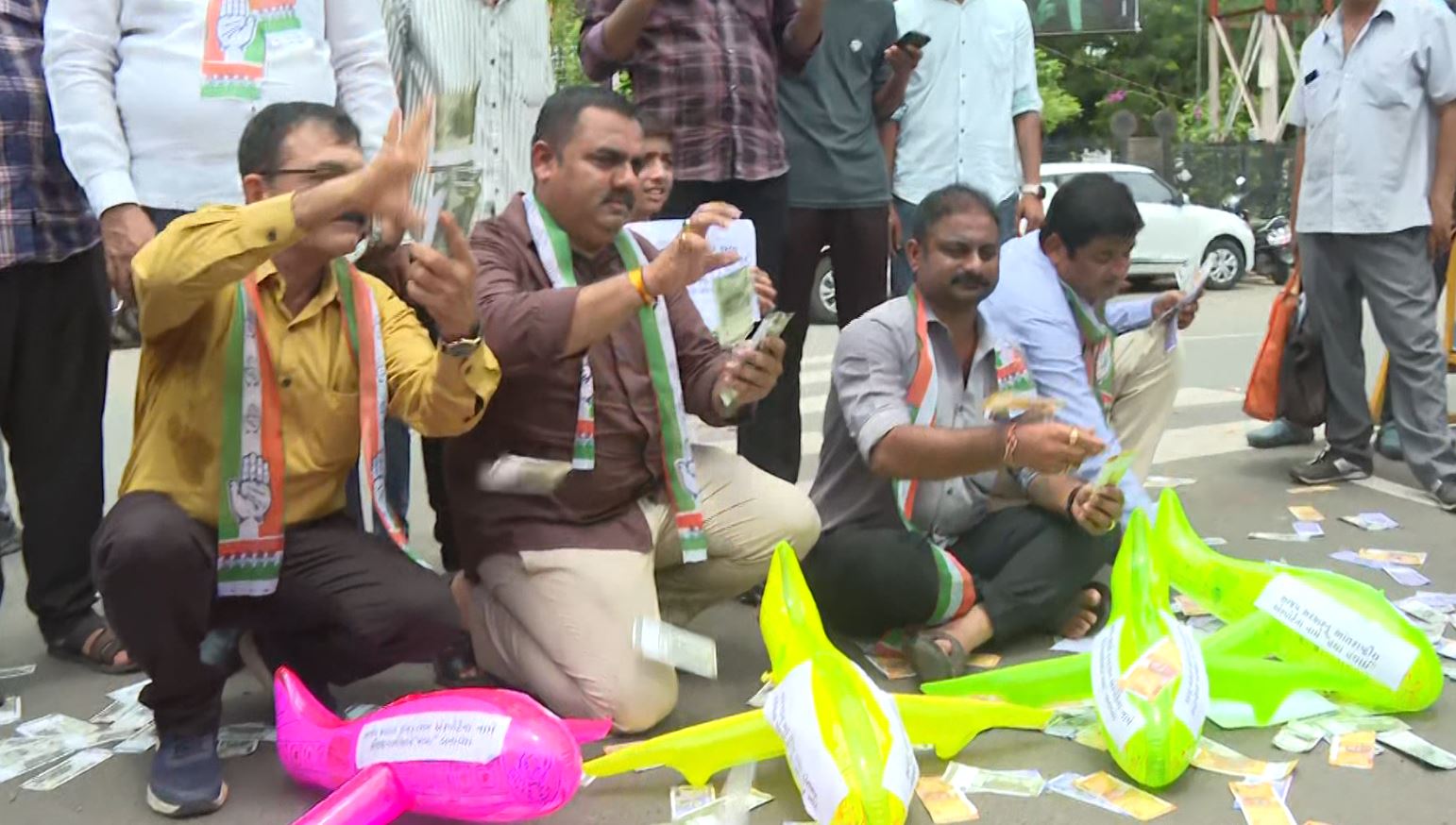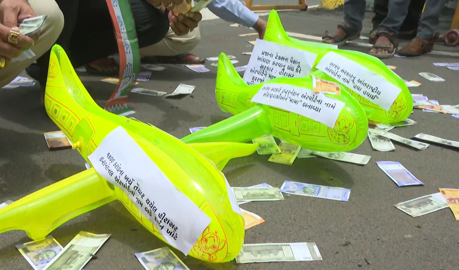 Rajkot માં કોંગ્રેસનો રમકડાંના પ્લેન બતાવીને અનોખો વિરોધ