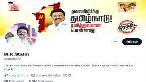તમિલનાડુના મુખ્યમંત્રી એમકે સ્ટાલિનના ટ્વિટર હેન્ડલ પરથી પણ બ્લુ ટિક ગાયબ છે. ટ્વિટરે કહ્યું હતું કે જે લોકો તેની કિંમત ચૂકવશે તેમની બ્લુ ટિક પરત લેવામાં આવશે નહીં. ઘણા એવા નેતાઓ છે જેમની બ્લુ ટિક પરત લેવામાં આવી નથી.