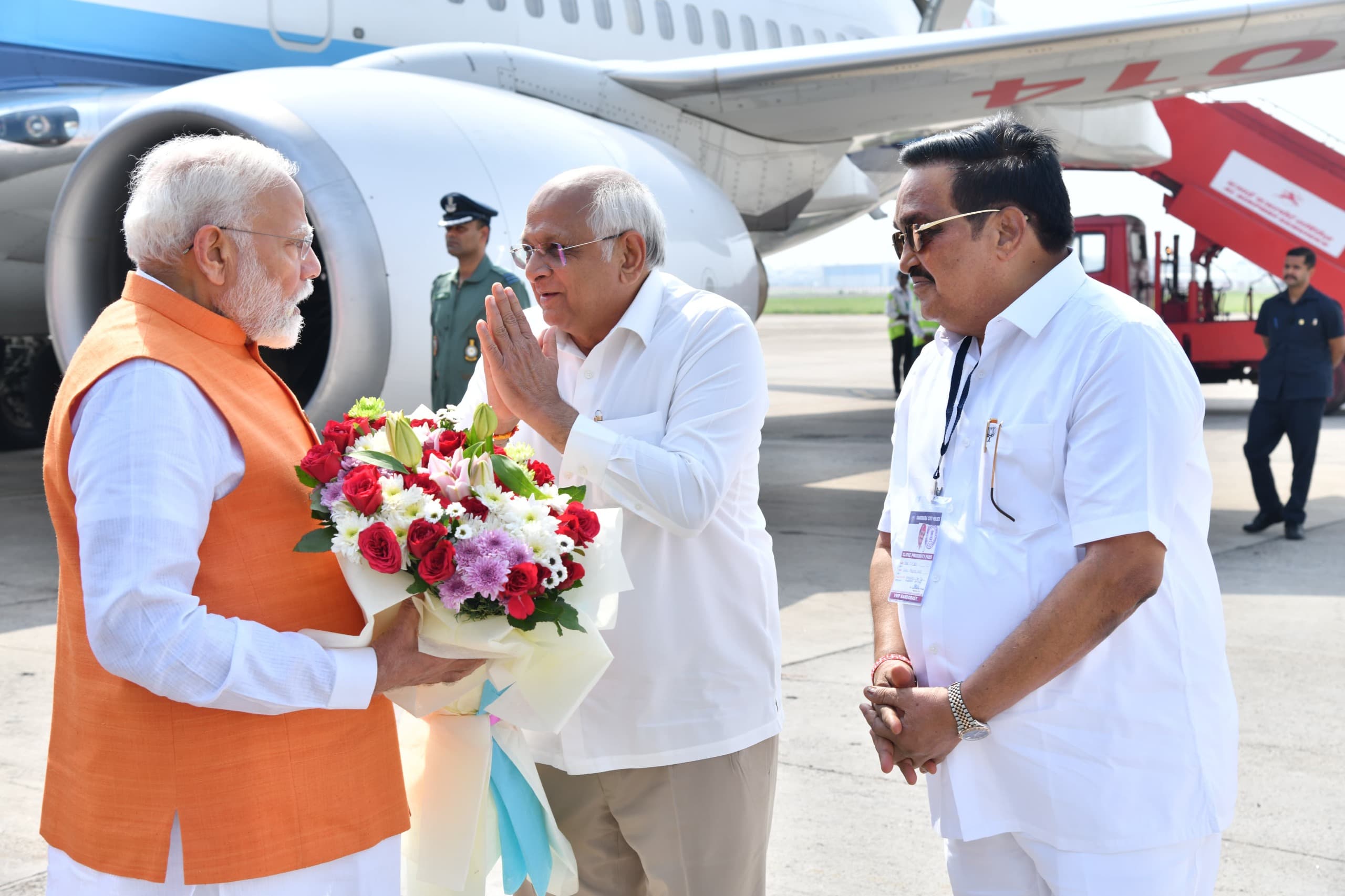 PM Modi નું વડોદરા એરપોર્ટ પર મુખ્યમંત્રી ભૂપેન્દ્ર પટેલ અને સી.આર.પાટીલે સ્વાગત કર્યું