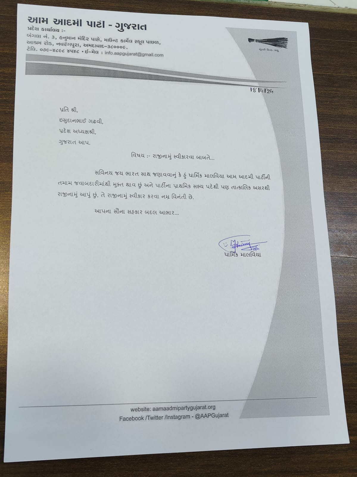રાજીનામા બાદ ધાર્મિક માલવીયાની પ્રતિક્રિયા સામે આવી છે. તેમણે કહ્યું કે, પાછલા ઘણાં સમયથી પાર્ટીમાં નિષ્ક્રિયતાના કારણે જવાબદારીથી મુક્ત થઇએ છીએ. હાલ ચૂંટણીને લઈ પાર્ટીને સક્રિય કાર્યકર્તાની જરૂર હોય. અમારી જગ્યાએ કોઈક યોગ્ય કાર્યકર્તાને જગ્યા મળે. ભાજપમાં (BJP) જોડાવાના સવાલ પર તેમણે જવાબ આપવાનું ટાળ્યું હતું.